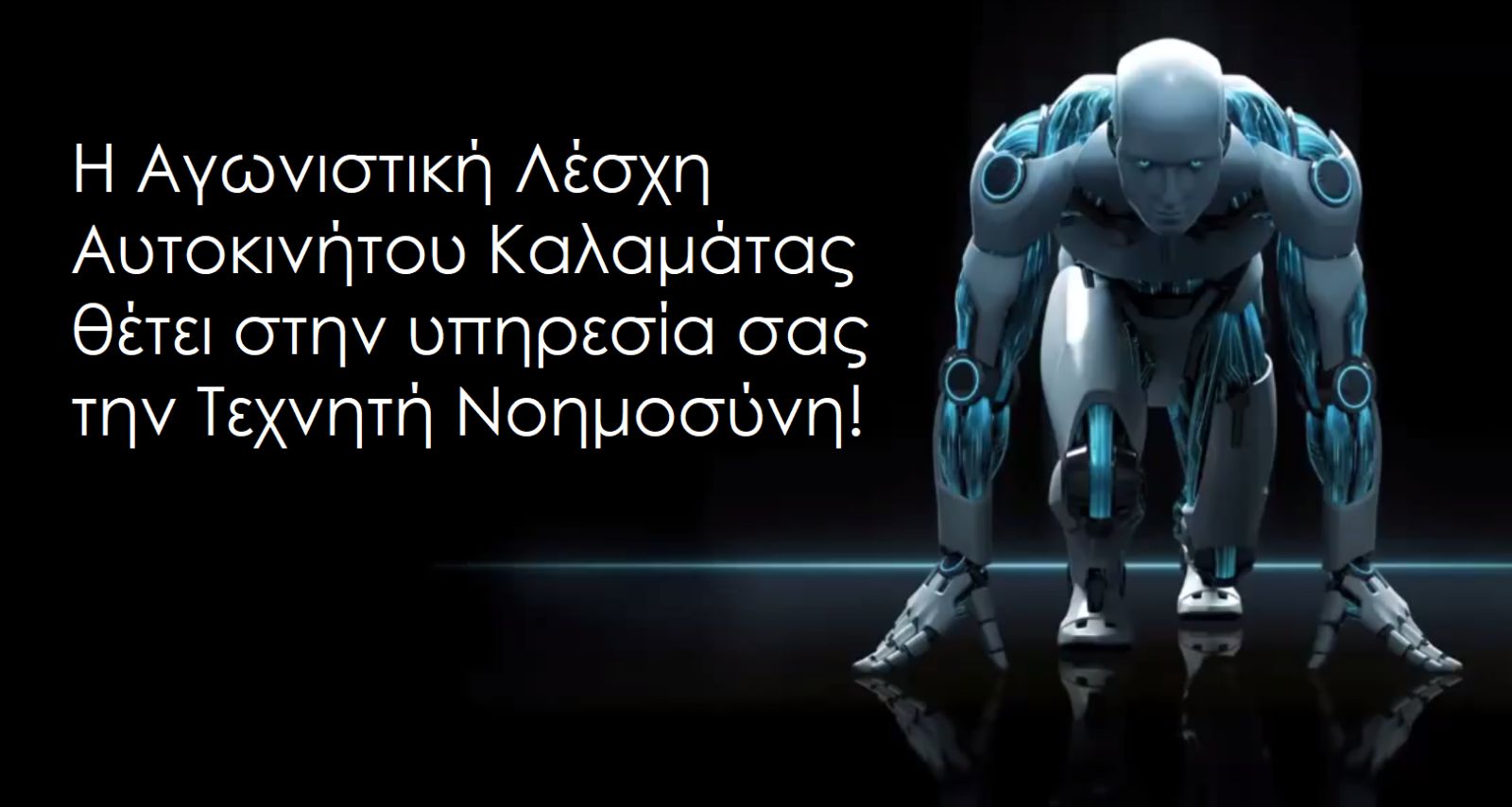 Η Αγωνιστική Λέσχη Αυτοκινήτου Καλαμάτας, θέλει να είναι πάντα πρωτοπόρος στις νέες τεχνολογίες! Για τον λόγο αυτό, ενεργοποιούμε στην ιστοσελίδα μας την ΑΙ τεχνολογία, δηλαδή την Τεχνητή Νοημοσύνη! Είμαστε η πρώτη λέσχη αγώνων αυτοκινήτου στην Ελλάδα -ίσως και στην Ευρώπη και τον υπόλοιπο κόσμο- που εφαρμόζει μία τέτοια υπηρεσία για τους φίλους της, χρήστες του διαδικτύου! Κάθε επισκέπτης της ιστοσελίδας μας, μπορεί να αντλεί πληροφόρηση σχετική με το αντικείμενο δράσης μας, αλληλοεπιδρώντας σε πραγματικό χρόνο με το «ρομποτάκι» μας, το οποίο ονομάσαμε «ΓΙΑΝΝΗ». Ένα ειδικά για τον σκοπό αυτό σύμβολο, εμφανίζεται κάτω δεξιά σε όλες τις σελίδες του ιστοτόπου μας κι όταν το επιλέξετε, αρχίζει η επικοινωνία σας μαζί του. Μπορείτε να υποβάλλετε διάφορα ερωτήματα, για τους αγώνες, για τους κανονισμούς που διέπουν την διοργάνωσή τους και την συμμετοχή των αγωνιζομένων, για την λέσχη μας κι οτιδήποτε άλλο σχετικό ενδιαφέρεστε.